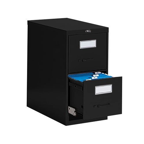These heavy-duty steel filing cabinets keep important documents neatly integrated while using minimal space! Drawers open and close easily with triple-tied full extension cradle suspension. Four vertical steel channels give extra stability. 8 nylon rollers per drawer for 25" model and 10 nylon rollers per drawer for 26 1/2". High drawer sides eliminate the need for any hang rails. Durable baked-on enamel over phosphatizing primer rustproofing treatment. Constructed with welded corners for strength, rigidity and durability. Meets ANSI/BIFMA and ISTA standards.