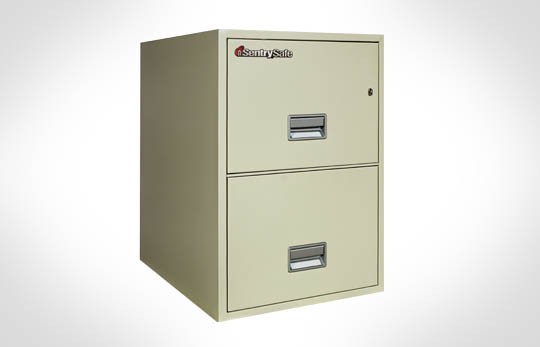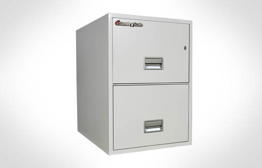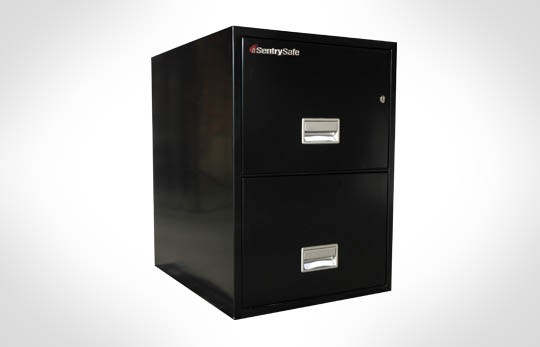 SentrySafe 2G2500 Legal Vertical 2-Drawer Fire Resistant File 25" Deep. The SentrySafe 2G2500 2 Drawer Vertical Fire File is compact and economical, making it the ideal choice for both home and office. Designed with 2 drawers, it holds and protects legal size documents. The SentrySafe 2G2500 Vertical Fire File accommodates hanging file folders and each drawer includes a movable divider or follower block for supporting manila folders. It is UL Classified for 1 hour fire endurance.