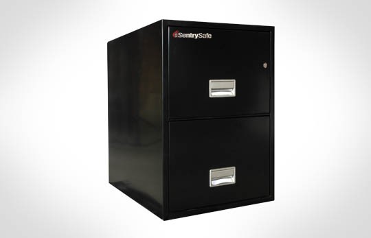 SentrySafe 2G3110 Legal Vertical 2-Drawer Fire File 31" Deep. Fireproof & Impact Resistant. Unsurpassed fire and water protection for your business records. The SentrySafe 2 Drawer Legal Vertical Fire File safeguards your information, business records and other irreplaceable contents against loss from the ravages of fire. The kind of "peace of mind" you expect from SentrySafe. Designed with 2 drawers, it holds and protects legal size documents. The Sentry®Safe 2T3110 Vertical Fire File accommodates hanging file folders and each drawer includes a movable divider or follower block for supporting manila folders. It is UL Classified for 1 hour fire endurance and is UL Classified for explosion and impact resistance, as well.