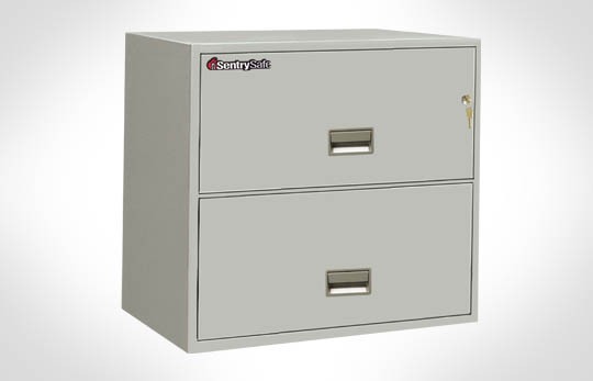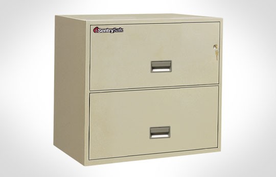 SentrySafe 2L3010 Lateral 2-Drawer File 30" Wide. Fire & Impact Resistant. The sleek design of the SentrySafe 2L3010 2 Drawer Lateral Fire File makes it an ideal addition in any office environment. This 30 inch lateral file carries the UL Classification for one hour fire protection and is UL Classified for explosion and impact resistance, as well. Drawers can be configured to accommodate both letter and legal hanging file folders – all within the same unit for maximum filing capacity. It is designed with a plunger key lock that secures all drawers. A drawer-specific “lock/unlock” provision also provides additional security by allowing access isolation to specific drawers.