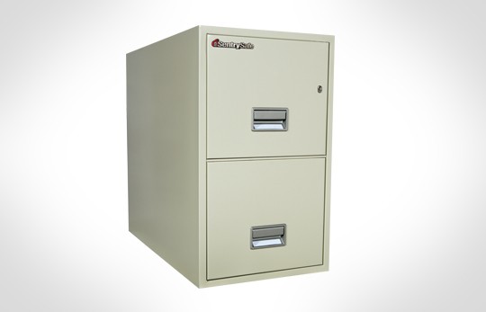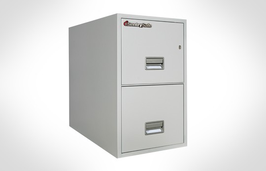 SentrySafe 2T3110 Letter Vertical 2-Drawer Fire File 31" Deep. Fireproof & Impact Resistant. The Sentry®Safe 2T3110 2 Drawer Vertical Fire File is compact and economical, making it the ideal choice for both home and office. Designed with 2 drawers, it holds and protects letter size documents. The Sentry®Safe 2T3110 Vertical Fire File accommodates hanging file folders and each drawer includes a movable divider or follower block for supporting manila folders. It is UL Classified for 1 hour fire endurance and is UL Classified for explosion and impact resistance, as well.