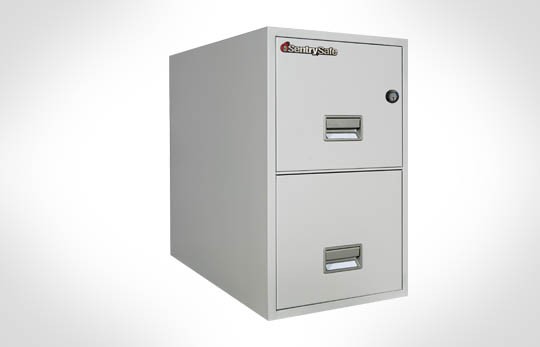 All fire resistant insulation requires water in order to prevent the spread of fire. Insulite™, Sentry’s trademarked air-dried insulating composite’s water is chemically bound. This means insulation contains no free water. The competitor’s oven dried insulation has a small amount of free water, which can evaporate over time, thus losing it’s protective ability. Insulite™ contains no asbestos and NEVER dries out or loses its protective ability over time, so breathe easy—you, your vital records, and your environment are protected with a Sentry fire proof fi ling cabinet. Each drawer is individually encased by its own inner steel drawer vault that not only aids in preventing dusting insulation from contaminating your records, it also helps to eliminate the spread of fire from one drawer to another. This feature also prevents entry from an unlocked compartment to a locked one. Sentry’s unique seamless design provides further protection against otherwise undetected forced entry.
