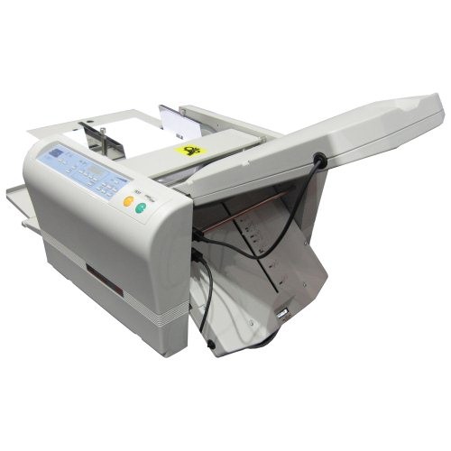 The MBM 307A Paper Folder is preprogrammed with 6 popular folds and can store an additional 18 folds in its memory. Its single sheet feeding is automatically maintained for varying weights of paper. The 3-roller friction feed provides precise folds every time. It has quick release roller system for fast and easy maintenance. It features fully enclosed fold tables for quiet operation. It also has an optional perforator and scorer.