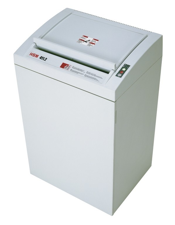HSM 411.2cc Level 3 Cross Cut Professional Paper Shredder. The HSM 411.2cc Level 3 Cross Cut Paper Shredder is a high performance AC model for EDP departments and office floors. This shredder can destroy entire computer listings and shred store and credit cards as well as CDs, and floppy disks. The HSM 411.2cc Shredder includes a keypad control for constant operation and reverse, a photoelectric cell for automatic start/stop control and automatic stop features when the waste bag is full or when the door is open. The 411.2cc will even automatically reverse itself in the event of a paper jam. Plus, the HSM 411.2cc Paper Shredder includes a modern electronic controller, a stand-by mode with LED indicator and a removable, reusable waste bag. Check out all of the great features included in this shredder today.