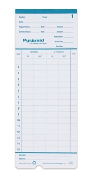 Time cards for use with the Pyramid 2400 Time Recorder.