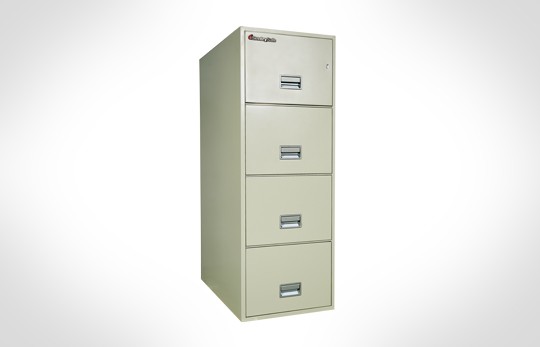 SentrySafe 4G2500 Legal Vertical 4-Drawer Fire Resistant File - 25" Deep. The SentrySafe 4G2500 2 Drawer Vertical Fire File is compact and economical, making it the ideal choice for both home and office. Designed with 4 drawers, it holds and protects legal size documents. The SentrySafe 4G2500 Vertical Fire File accommodates hanging file folders and each drawer includes a movable divider or follower block for supporting manila folders. It is UL Classified for 1 hour fire endurance.
