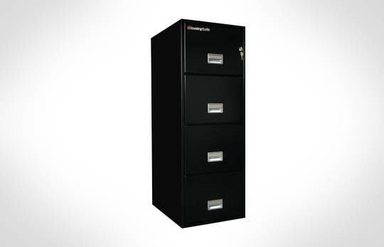 SentrySafe 4G2510 Legal Vertical 4-Drawer File 25" Deep. Fire & Impact Resistant. The SentrySafe 4G2510 4 Drawer Vertical Fire File is compact and economical, making it the ideal choice for both home and office. Designed with 4 drawers, it holds and protects legal size documents. The SentrySafe 4G2510 Vertical Fire File accommodates hanging file folders and each drawer includes a movable divider or follower block for supporting manila folders. It is UL Classified for 1 hour fire endurance and is UL Classified for explosion and impact resistance, as well.