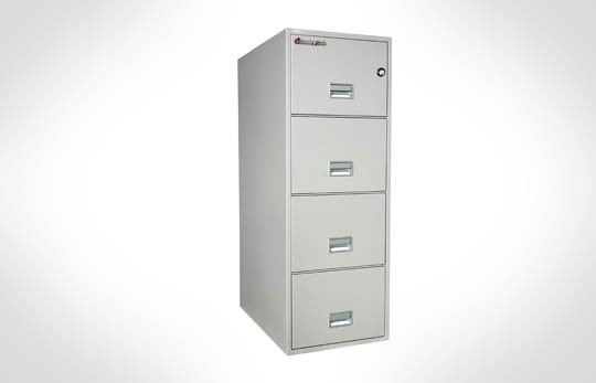 Assure plentiful storage and protection for your documents and records with the Sentry 4G2531 4 Drawer Fire, Water & Impact Resistant File Safe. The 4G2531 can accommodate a variety of file sizes such as legal, A-4, folio, and letter size files in the same cabinet without the need for additional costly accessories and features a lock/no-lock mechanism that allows a user to enable a drawer to stay unlocked while other drawers remain locked. Its unprecedented water resistance was independently tested by Intertek and was rated for fire resistance with the Underwriter's Laboratory. Its UL fire rating is for 1 hour in temperatures up to 1700ºF, along with its UL explosion rating for a 2000ºF explosion, and lastly a UL impact rating for a 30 foot drop in addition to a 1550ºF fire resistance test.