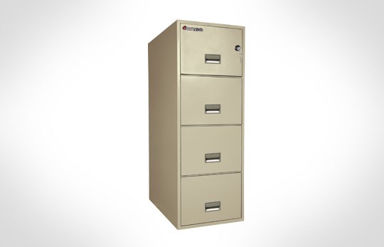 The Sentry 4G3131 4 Drawer Fire, Water & Impact Resistant File Safe (Formerly the Schwab Trident 4CTC-5000) has been tested for unprecedented water resistance and for heavy duty fire resistance. It was independently tested by Intertek demonstrating for its water resistance and has been rated and tested by the Underwriter's Laboratory for 1 hour in temperatures up to 1700ºF, explosion hazard resistance at 2000ºF, and 30 foot impact-resistance in addition to a 1550ºF fire resistance test. The 4G3131 features a lock/no-lock mechanism that allows a user to enable a drawer to stay unlocked while other drawers remain locked.