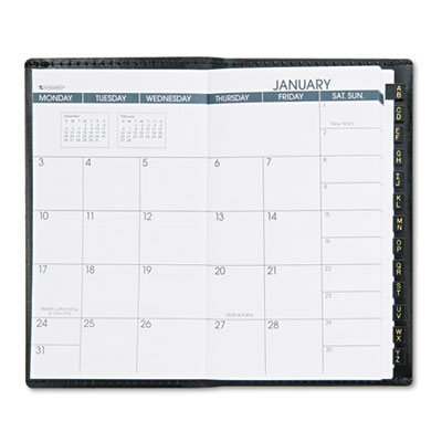 Convenient take-along pocket size. Tabbed telephone/address section for quick look-ups. Perforated memo pad for easy tear-off. Size: 3 1/2 x 6 1/8; Page Color/Theme: White; Appointment Ruling: None.