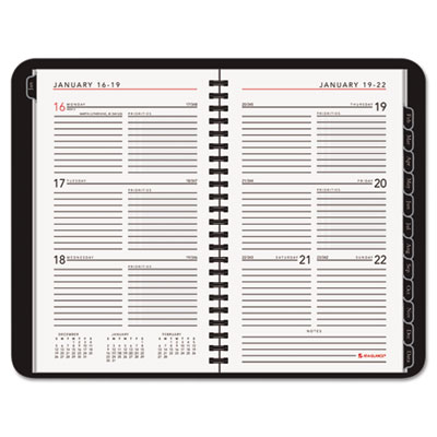 Weekly spreads with priorities space for each day plus tabbed monthly spreads. Special information pages for notetaking and project management. Modern textured cover. Size: 4 7/8 x 8; Page Color/Theme: White; Appointment Ruling: 8 AM to 6 PM, Mon.-Fri..