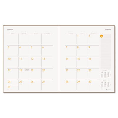 - Planner with one month per two-page spread.