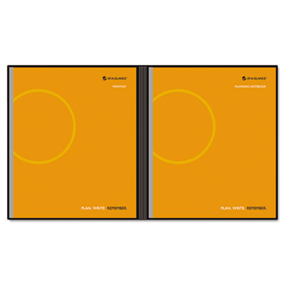 Two books in one jacket. Planner with one month per two-page spread. Special pages include: three-year reference calendar, holidays, future planning, and contact pages. Notebook with 160 lined planning pages; perforated pages with date area at the top of each page. Hot-spot reminder section on each page. Size: 9 1/2 x 11; Page Color/Theme: White; Appointment Ruling: None.