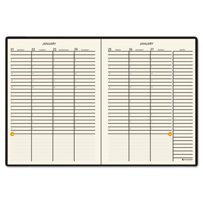 One week per two-page spread plus tabbed monthly spreads. Perfect Bound with bungee closure, gusseted pocket and ribbon page marker. Size: 7 1/2 x 10; Page Color/Theme: Ivory; Appointment Ruling: Hourly, 7 AM to 6 PM.