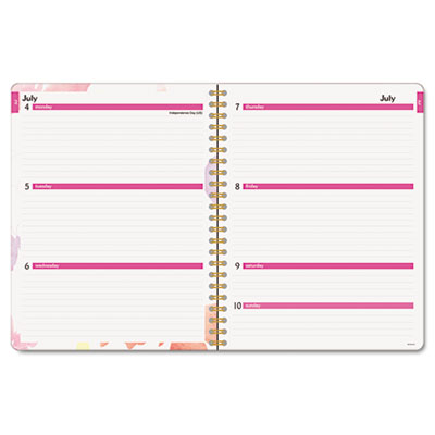 Unique watercolor design. As pleasing to the eye as it is to the planet. Two pages per week and a monthly overview with two pages per month. Past and future month reference calendar. Ample notes section for additional planning. Size: 8 1/2 x 11; Page Color/Theme: Beige/Watercolor Florals; Appointment Ruling: None.