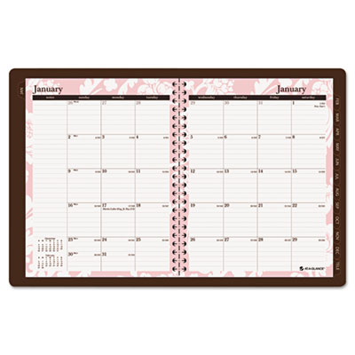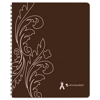 Fashion-forward planner supports the mission to fight the cause with stylish paisley pages and subtle metallic cover. Two pages per week plus tabbed monthly spreads with room for notes and "to-do's". Size: 8 1/2 x 11; Page Color/Theme: Breast Cancer Awareness; Appointment Ruling: 15-Min., 7 AM to 8:45 PM.