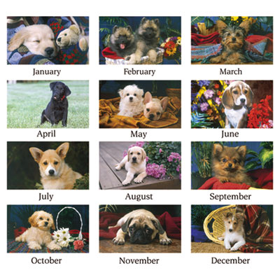 - A beautiful full-color image of an adorable puppy each month.