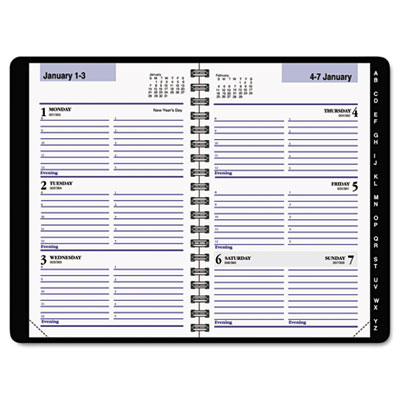 Blue ruled for contrast. Perfect for scheduling workweek appointments. Includes perforated page corners and a tabbed address/telephone section. Refillable. Size: 3 3/4 x 6; Page Color/Theme: White; Appointment Ruling: 8 AM to 5 PM Mon.-Fri..