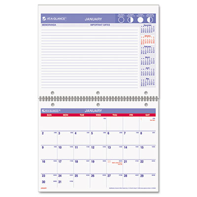 Convenient for carrying with in a ring binder. Opens for viewing monthly calendar page with notes page and six-month reference calendar. Federal holidays highlighted in red for help in scheduling. Includes monthly lunar cycle. Size: 11 x 8 1/2; Page Color/Theme: White.