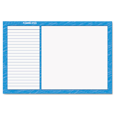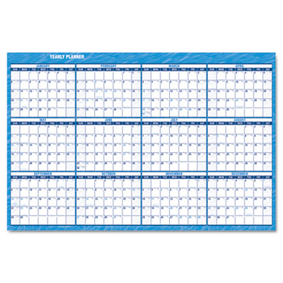 Large bold print on bright white background is easy to see and read. Yearly calendar on one side and bordered ruled and unruled space on other side for lots of notes. Write-on, wipe-off surface erases easily with a damp cloth. Shaded weekends contrast with the workweek. Size: 48 x 32; Page Color/Theme: White/Blue.