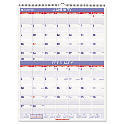AAGPM928 Recycled Two-Month Wall Calendar, Blue and Red, 22" x 29", 2013 By AT-A-GLANCE
