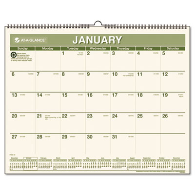 AAGPMG7728 Recycled Wall Calendar, Green, 15" x 12", 2013 By AT-A-GLANCE