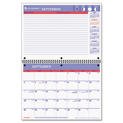 Convenient for carrying with in a ring binder. Opens for viewing monthly calendar page with notes page and six-month reference calendar. Federal holidays highlighted in red for help in scheduling. Includes monthly lunar cycle. Size: 11 x 8; Page Color/Theme: White.