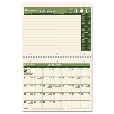 AAGSK16G16 Recycled Monthly Desk/Wall Calendar, 11 x 8-1/2, Cream/Green, 2012-2013 By AT-A-GLANCE