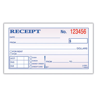 ABFDC2501 Receipt Book, 2 3/4 x 5 3/8, Two-Part, 50 Forms By CARDINAL BRANDS INC.