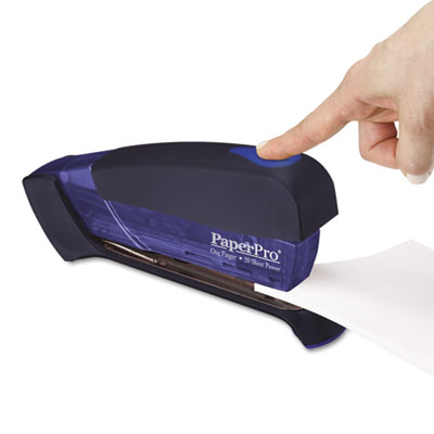 The stapler that started the revolution! One-finger stapling power for up to 20 sheets. Patented staple-gun action, lightweight with non-slip handle and base. Jam-free performance. Standard staples included. Stapler Type: Power-Assist; Staple Capacity: Full Strip (210 Staples); Size of Staple Used: 1/4".