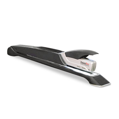 Makes short work of any binding job. One finger stapling power for up to 25 sheets of paper. Power-assisted stapling technology. 12.5" reach and 80% easier to use than a standard long reach. Binds presentations with page sizes up to 25 inches. Includes a ruler with a sliding paper-guide to ensure uniform, accurate staple placement every time. Utilizes standard staples (26/6). Package includes one rack of staples. Stapler Type: Long Reach; Size of Staple Used: 1/4".