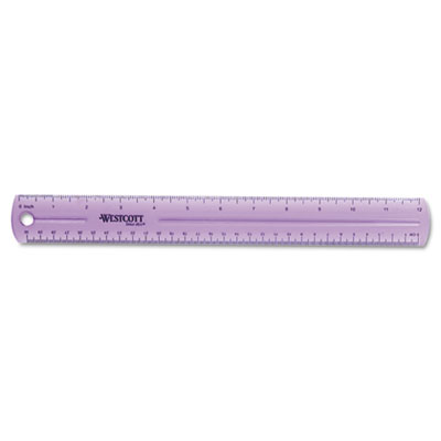 Brighten your desktop with assorted transparent jeweltone colors. Hang-up hole. Flexible, durable plastic. Ruler Type: Standard/Metric; Length: 12"; Standard Scale: 1/16".