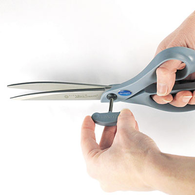 Titanium bonded scissors with comfortable ergonomic nylon soft handles can cut through multiple layers of even the toughest material. The oversized, adjustable hex screw allows you to adjust the cutting tension. Provides three times the strength of stainless steel scissors. Cut Length: 4 1/2"; Scissor Length: 9"; Tip Type: Blunt.