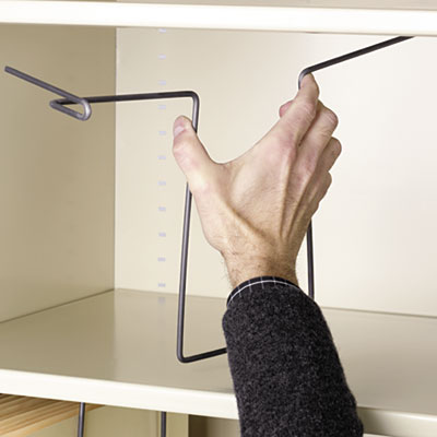 - Wire dividers firmly snap into the underside of each adjustable shelf to keep files and books upright.