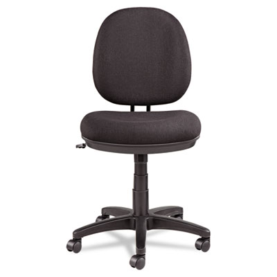 Molded plastic shell resists impact. Waterfall seat edge helps relieve pressure points on the underside of legs. Five-star base with casters for easy mobility. Optional Arms sold separately. Recommended Applications: General Office & Task; Seat/Back Color: Black Fabric; Features & Functions: Back Height Adjustment; Pneumatic Seat Height Adjustment; Tilt Tension/Tilt Lock.