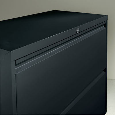 19 1/4" deep drawers with side-to-side hang rails to accommodate letter/legal hanging files. Full drawer extension on steel ball bearing telescoping slide suspension. Reinforced double-wall drawer fronts provide extra stability. Stylish full-width recessed pulls. Anti-tipping interlock system allows only one drawer to open at a time. Single key core removable lock with two keys. Color: Black; Overall Width: 30"; Overall Depth: 19 1/4".