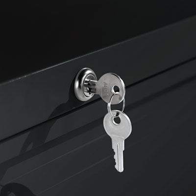 - Anti-tipping interlock system allows only one drawer to open at a time.