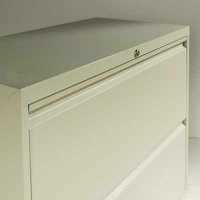 19 1/4" deep drawers with side-to-side hang rails to accommodate letter/legal hanging files. Full drawer extension on steel ball bearing telescoping slide suspension. Reinforced double-wall drawer fronts provide extra stability. Stylish full-width recessed pulls. Anti-tipping interlock system allows only one drawer to open at a time. Single key core removable lock with two keys. Color: Light Gray; Overall Width: 36"; Overall Depth: 19 1/4".