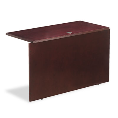 Combining veneer elegance with modular format versatility. Premium-grade veneers with solid wood core. Thick worksurface with reeded solid wood edges. Cord management grommet. Durability suited to everyday commercial applications. Adaptable to left- or right-handed configuration. Color: Mahogany; Overall Width: 47 1/2"; Overall Depth: 23 5/8".
