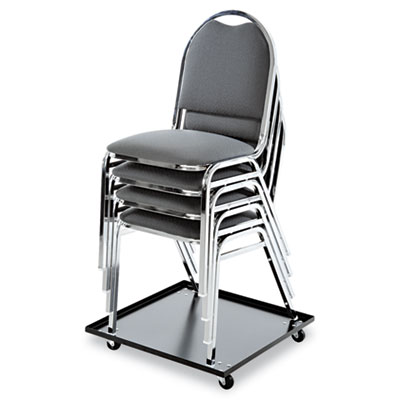 Conveniently transport stacking chairs. Accommodates up to 12 chairs depending on the style. Durable steel construction. Four 2” casters for mobility. Shipped assembled. Color: Black; Capacity (Weight): 280 lbs.; Caster/Glide/Wheel: Four 2" Casters.