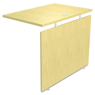 A contemporary classic with clean lines and modern silver metalwork. Thermally fused woodgrain laminate is scratch-, dent- and water-resistant. Commercial-grade 1" thick elevated worksurface stands up to heavy use. Handy grommet for cable management and full-width modesty panel for privacy. Leveling glides help compensate for uneven floors. Not freestanding; combine with Desk Shell and Credenza Shell to create a "U" workstation. Color: Maple; Overall Width: 23 5/8"; Overall Depth: 23 5/8".