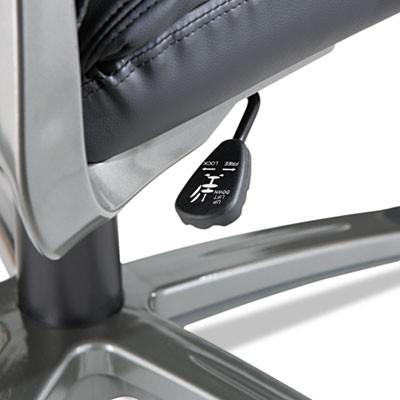 Comfortable and supportive executive chair that is easy to assemble. Deep, soft body cushions provide a supportive sitting experience. Padded armrests offer soft support. Quick and easy no-tools, no-hardware assembly--simply pop-on base and flip up back. Five-star base with scratch-resistant black foot zones. Recommended Applications: Executive & Management; Seat/Back Color: Black; Features & Functions: Pneumatic Seat Height Adjustment; Tilt Tension/Tilt Lock.