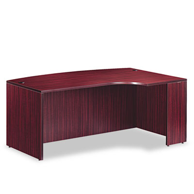 Commercial-grade laminate worksurface and side panels are water-, scratch- and stain-resistant. Charcoal accent line under worksurface adds a distinctive touch. Computer corner is ideal for keyboard or laptop use. Protective 3 mm PVC edge banding helps prevent damage from bumps. Two grommets for cable and wire management. Full-length modesty panel for privacy. Not freestanding. Use with Return/Bridge Shell to create an "L" grouping; add a Credenza Shell to form a complete "U" workstation. Color: Mahogany; Top Shape: Right-Hand Porkchop.