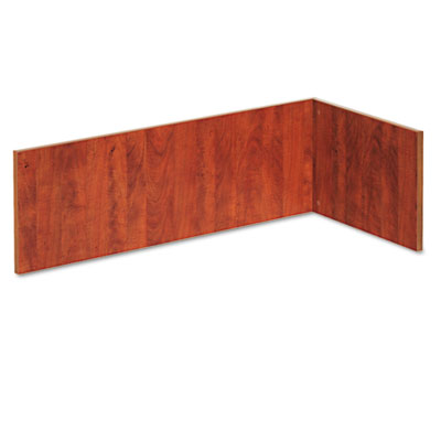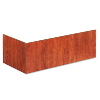 Durable woodgrain laminate finish provides strength to stand-up to daily wear-and-tear. Not freestanding; use with bow front reception counter, sold separately, to fully enclose a 72 x 90 "L" grouping reception station. Reversible—can be mounted on left or right side to accommodate workspace needs. Keeps documents and files protected by adding privacy to the reception area. Color: Medium Cherry; Overall Width: 47 1/4"; Overall Depth: 23 5/8".