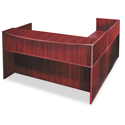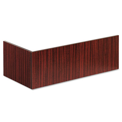 Durable woodgrain laminate finish provides strength to stand-up to daily wear-and-tear. Not freestanding; use with bow front reception counter, sold separately, to fully enclose a 72 x 90 "L" grouping reception station. Reversible—can be mounted on left or right side to accommodate workspace needs. Keeps documents and files protected by adding privacy to the reception area. Color: Mahogany; Overall Width: 47 1/4"; Overall Depth: 23 5/8".