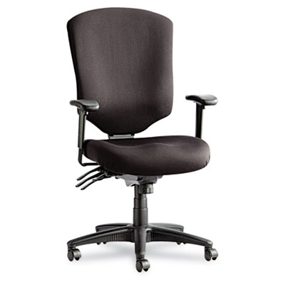 Multifunction mechanism allows back angle adjustment relative to seat, adjustable tilt (free floating or infinite locking positions) and forward tilt. Waterfall seat edge reduces pressure at the back of knees. Padded slant T-arms are height- and width-adjustable. Impact-resistant molded plastic shell. Five-star base with casters for easy mobility. Recommended Applications: Executive & Management; Seat/Back Color: Black; Features & Functions: Asynchronous Control; Back Height Adjustment; Pneumatic Seat Height Adjustment; Seat Glide Mechanism; Tilt Tension/Tilt Lock.