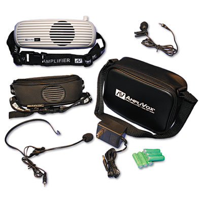 Reduce vocal strain and stress with this handy personal PA system that's ideal for teachers, trainers and presenters. Lightweight and comfortable, this unique "fanny-pack" unit weighs only 1.2 lbs. on your waist. With five watts of power, this go-anywhere unit is perfect for indoor or outdoor use. Easy-to-use amplifier features a simple volume control with a built-in on/off switch. Durable 40" neoprene belt with 12" extension is easy to adjust and sweatproof. Rechargeable NiMH power pack delivers up to 14 hours of continuous talk time. Voltage: 9.0 V; Power Source(s): 6 AA Batteries.