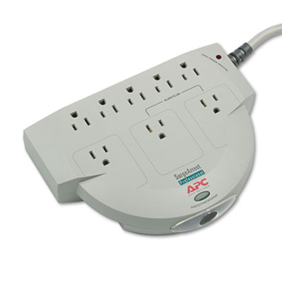 Prevent damage to computers and electronics with this professional-grade surge protector. Protection Working indicator warns if unit's circuits are damaged. Wide-spaced outlets allow you to connect bulky transformer block plugs without covering up other outlets. Number of Outlets: 8; Joules Of Surge Protection: 320 J.