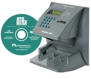 Acroprint ATRx - Biometric HP 1000 Network, 100 Employees. Punch in and out at multiple pc's, then verify punch with hand punch. A complete time and attendance system, the ATRx Biometric HP 1000 package includes a 100-employee edition of ATRx Biometric-Enabled software for HandPunch powered by Attendance Rx, one HP1000 hand reader, a communications cable for connecting the reader to your PC, a Quick Start sheet, and a power transformer for the hand reader. Eliminate costly "buddy punching" and provide indisputable records of employees' attendance with this economical and reliable time and attendance system.