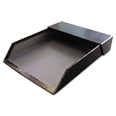 Letter tray keeps papers organized and off your desk. Crocodile pattern adds a touch of elegance. Made from sturdy recycled paperboard. With Roof. Holds Paper Size: Letter; Width: 9 5/8".